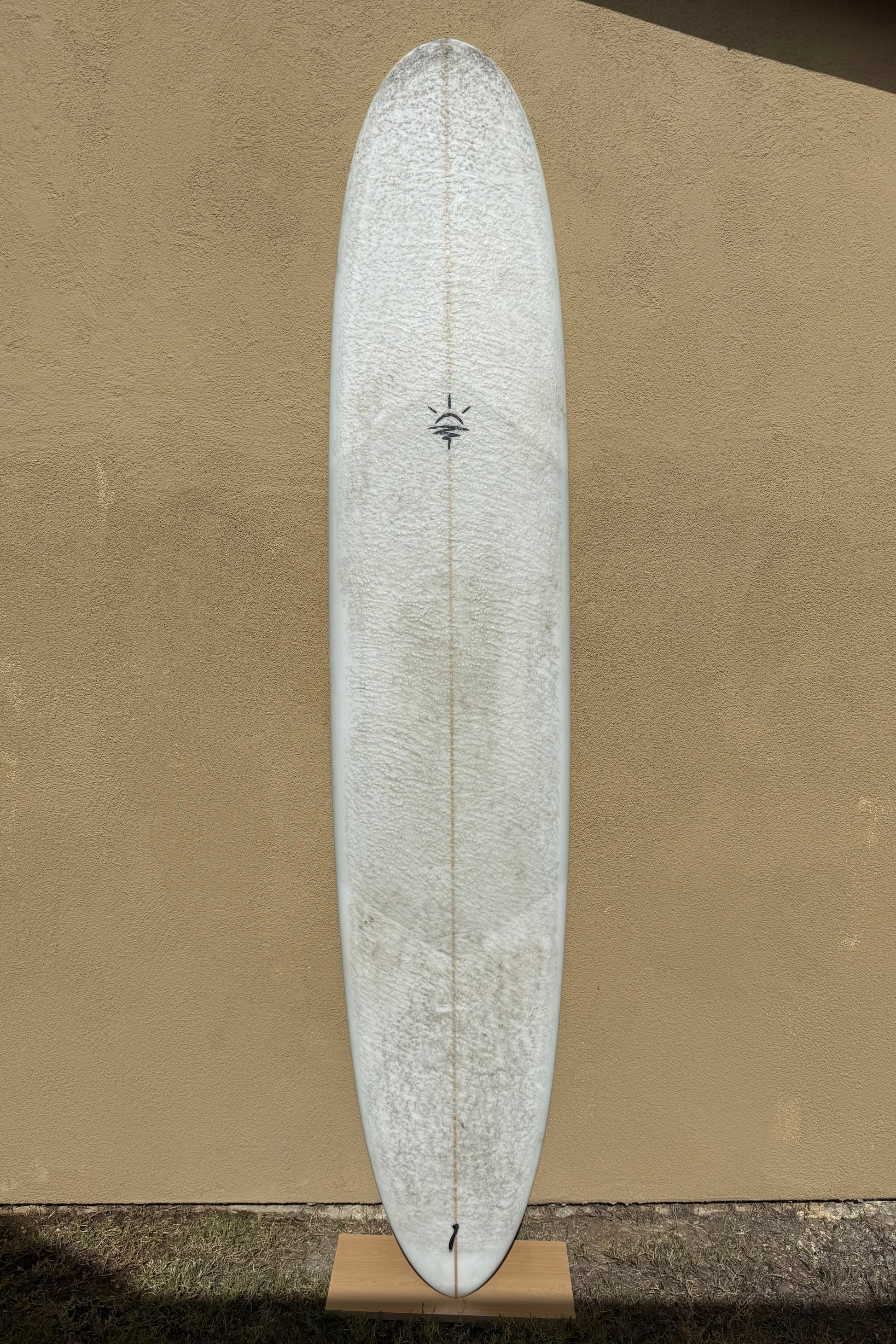 Wide point is pulled forward in the outline with healthy width in the nose and transitions a nice straight mid-section that carries width back quite a bit and tapers nicely into a girthy pin tail. It features a classic flat noserider profile with low rocker in the nose and low/moderate rocker in the tail. Volume is balanced to keep things skaty when driving from the tail.
